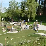 Fantastiske og ryddelige værelser med køjesenge og stor poolområde. God beliggenhed i et grønt område, lige ved siden af en sø samt en bowlingbane. Desuden boede vi 10 minutters gang fra Fredericia Golf Club.